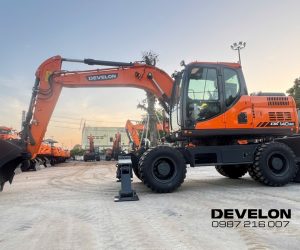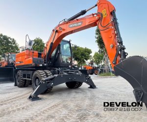Máy xúc đào thuỷ lực bánh lốp nhãn hiệu Develon với model: DX140WE được gọi là” máy xúc lốp Quốc Dân” vì nó được người dân, các doanh nghiệp và Cơ Quan Nhà Nước sử dụng phổ biến, rộng rãi. Trước kia là nhãn hiệu Doosan DX140W nhưng từ 2023 thương hiệu Doosan trên Toàn Cầu đã được đổi tên thành DEVELON.