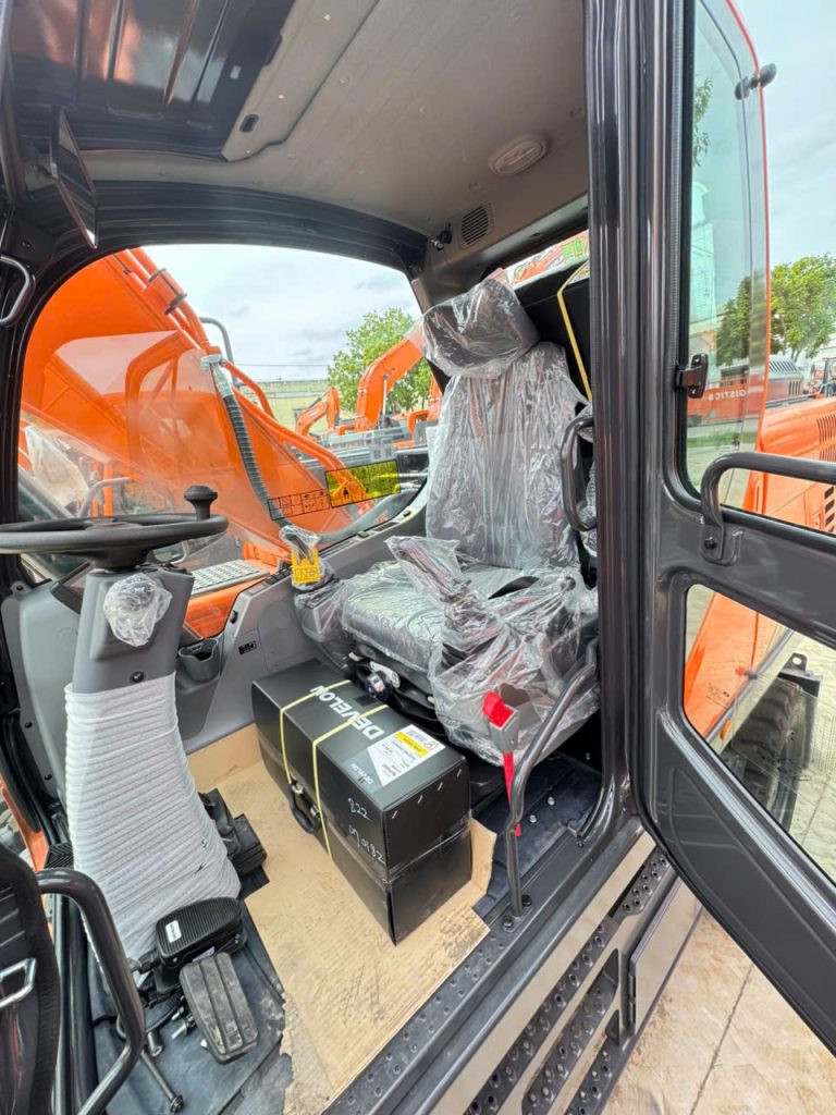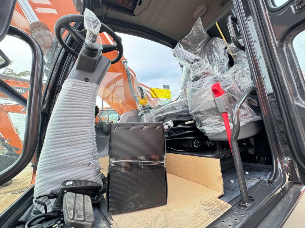 Cabin của máy đào bánh lốp DX190W được thiết kế với nhiều tính năng tiện nghi như:
