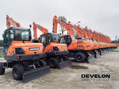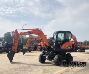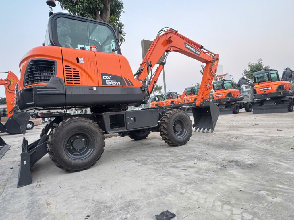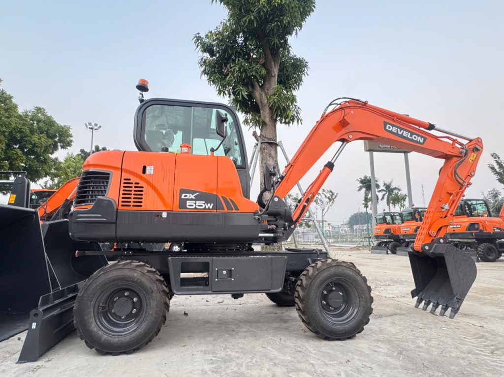 Máy xúc đào bánh lốp Develon DX55W với giá chỉ hơn 1 tỷ đồng phù hợp cho các công việc như đào rãnh, làm móng và phá dỡ. Sản phẩm đạt tiêu chuẩn của tập đoàn Doosan Develon toàn cầu được bảo hành 2 năm hoặc 4000 giờ.