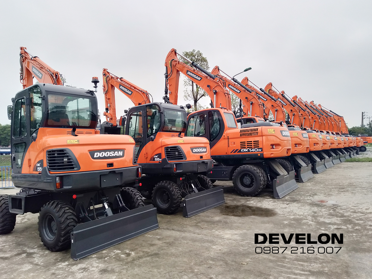 Máy xúc Develon Bánh Lốp DX55W mới ra mắt thay thế cho thương hiệu Máy xúc Develon Bánh Lốp DX55W với giá chỉ hơn 1 tỷ đồng phù hợp cho các công việc như đào rãnh, làm móng và phá dỡ. Sản phẩm đạt tiêu chuẩn của tập đoàn Doosan Develon toàn cầu được bảo hành 2 năm hoặc 4000 giờ.